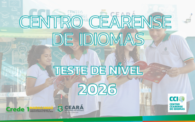 O diretor do centro cearense de idiomas de caucaia, em exercício, no uso das atribuições legais que lhe conferem os incisos I e III, do Art. 93 da Constituição do Estado do Ceará e atendendo ao que dispõe a Lei N° 16.455, de 19 de dezembro de 2017, o Decreto 34.559, de 16 de fevereiro de 2022, a Portaria N° 2662/2024-GAB e a Portaria N°0054/2025-GAB, anuncia que estarão abertas no período de 21, 22 e 23 de janeiro de 2026, as inscrições para o Teste de Nível dos cursos de Inglês e Espanhol para os módulos 2, 3, 4 e 5 – semestre 2026.1. As inscrições ocorrerão de forma presencial, no Centro Cearense de Idiomas – Unidade Caucaia, localizado na Av. Edson da Mota Correia, 620 – Centro, Caucaia – CE, (Piso L1 / LJ 138,139,140 e 140A do shopping Iandê).