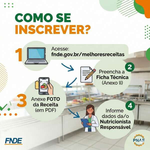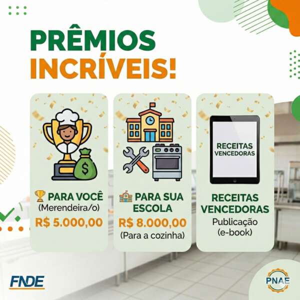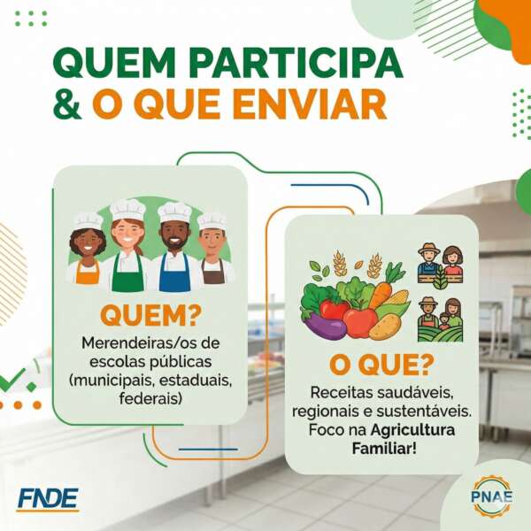 O presente Concurso consiste na seleção, divulgação e premiação de receitas culinárias elaboradas por merendeiras e merendeiros que atuam na alimentação escolar, doravante denominados PARTICIPANTES, que atuam em escolas públicas de educação básica, beneficiárias do Programa Nacional de Alimentação Escolar (PNAE), abrangendo todas as etapas e modalidades de ensino, inscritos nos termos deste Edital, valorizando práticas alimentares saudáveis, sustentáveis e alinhadas às diretrizes do PNAE.